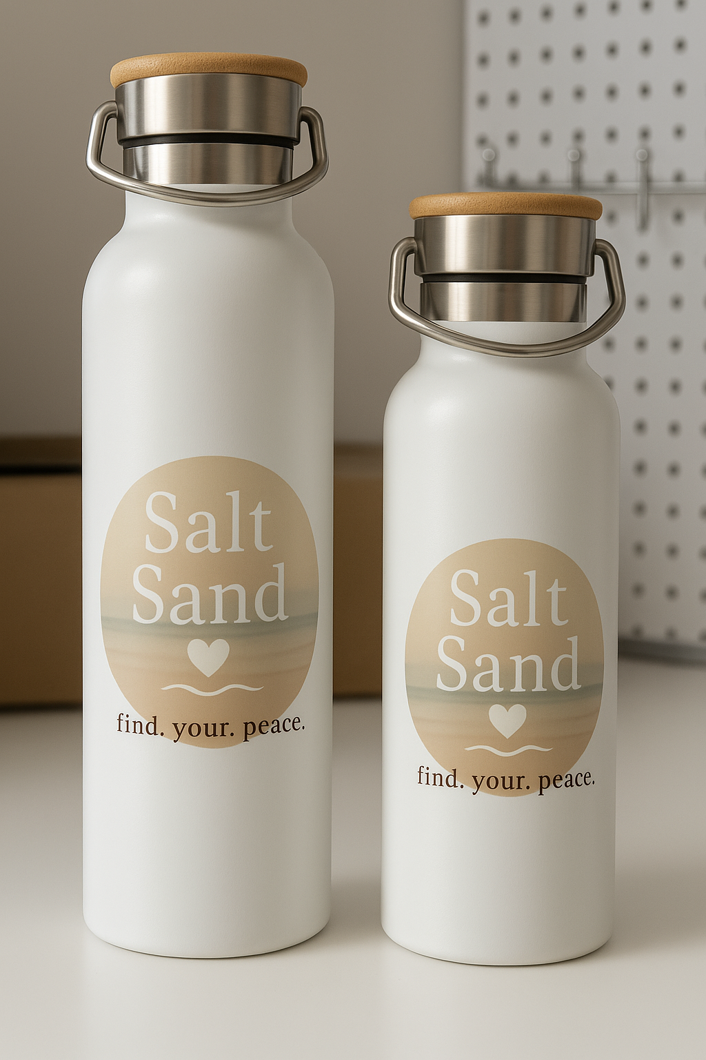 Stay grounded, refreshed, and aligned with the rhythm of the ocean wherever you go. Our Salt Sand Love Coastal Water Bottles are designed to bring the serenity of the shoreline into your everyday life. With a minimalist aesthetic and eco-conscious design, these bottles are the perfect companion for your mindful lifestyle.